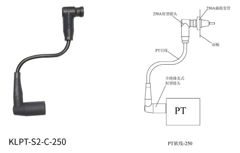 產品說明:主要用于一端是 PT,另一端是屏蔽型 250A 插拔套管的軟連接,使用可代替電纜連接的 PT 線來實現產品電氣連接的全絕緣、全密封。