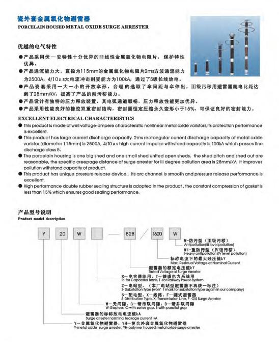 瓷外套金屬氧化鋅避雷器